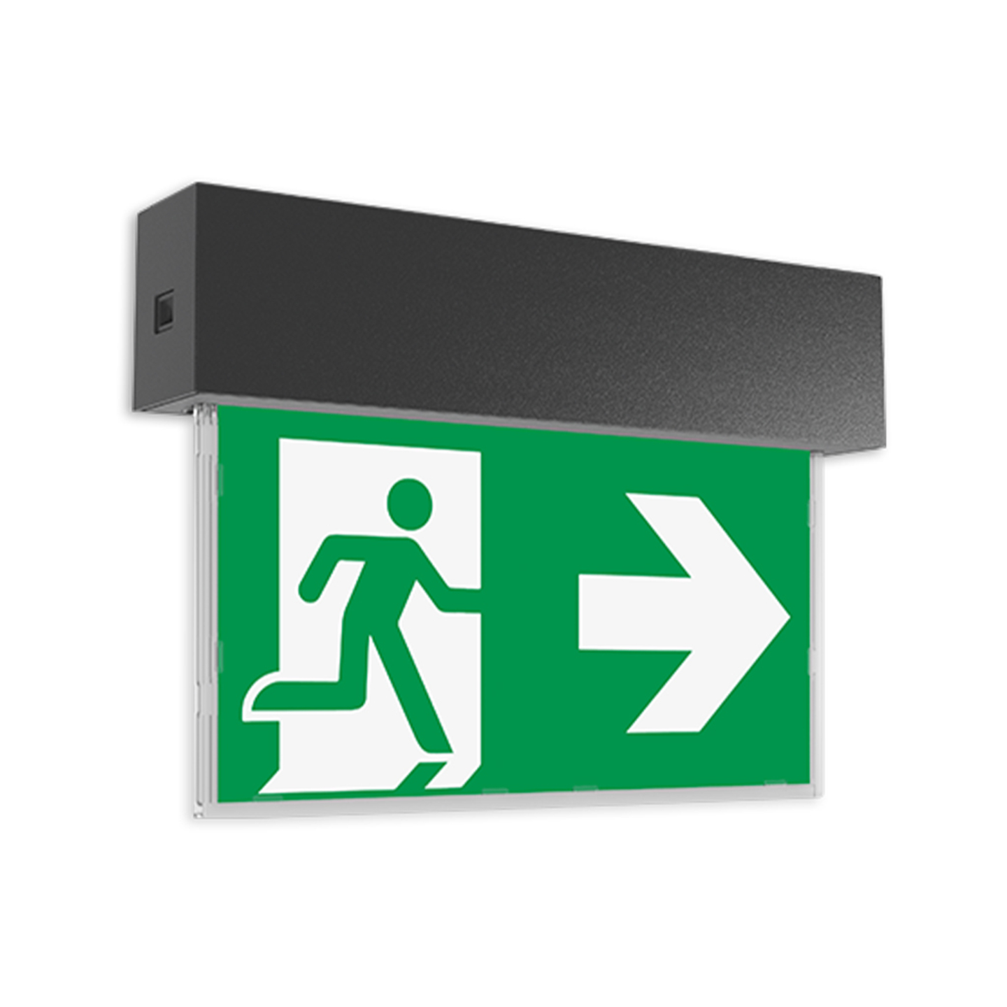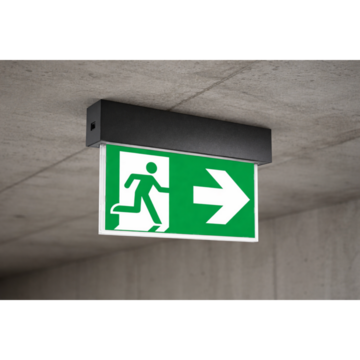Eenvoudig armatuur van polycarbonaat met een schroefloos klikmechanisme, geschikt voor wand- en plafondmontage. Inclusief wandadapter met kliksysteem. De 8 mm PC/acryl glasplaat wordt verlicht door een energiezuinige LED-bar van 1 of 2 Watt. Wordt geleverd met een set pictogrammen (pijl links/rechts/omlaag/omhoog/blind) – zichtbaar tot 23 meter.